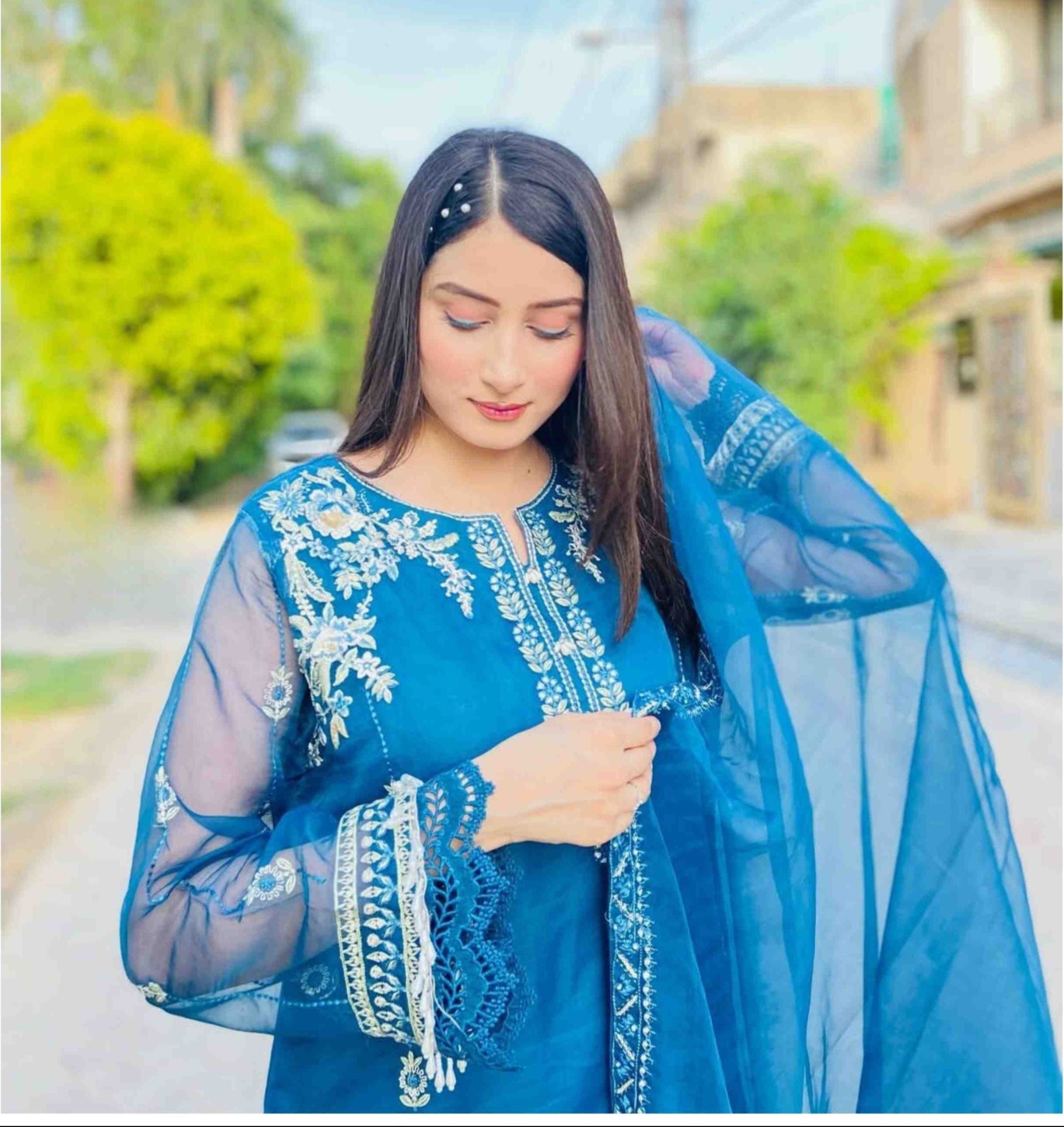 2-piece pure organza Embroidered Suit (B11213)