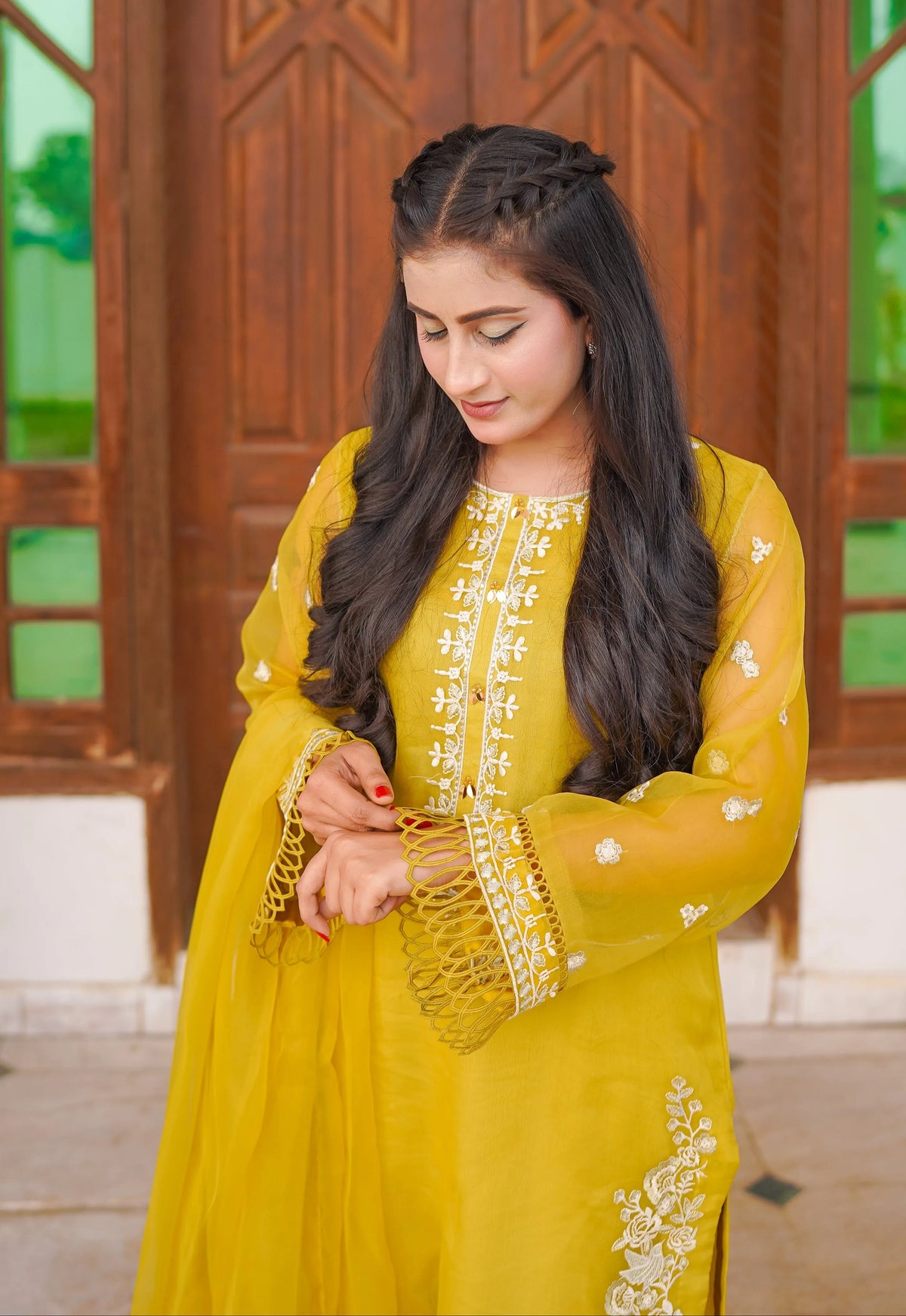 2 - Piece Pure Organza Embroidered Suit - Unstitched