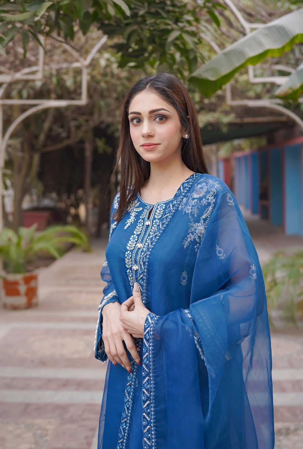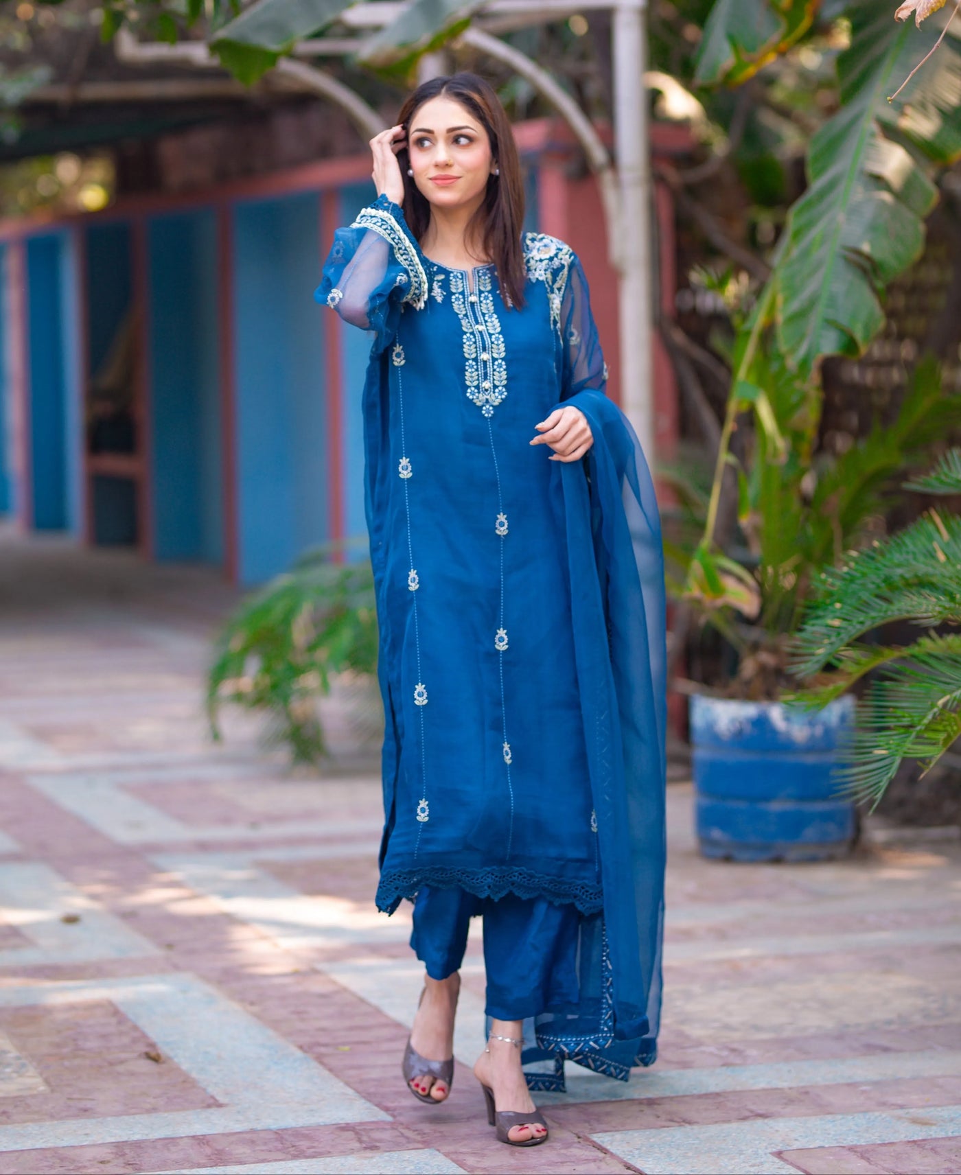 2 - piece pure Organza Embroidered suit (B11229)